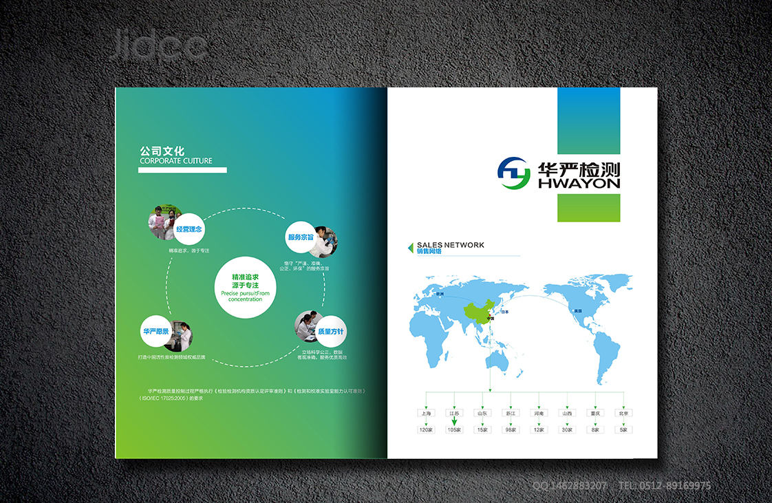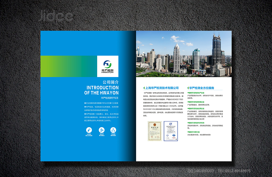 華嚴檢測是通過中國計量認證(CMA)資質認定的第三方檢測機構,極地視覺根據行業需求,結合自身LOGO特點為量身定做畫冊/樣本策劃設計方案。