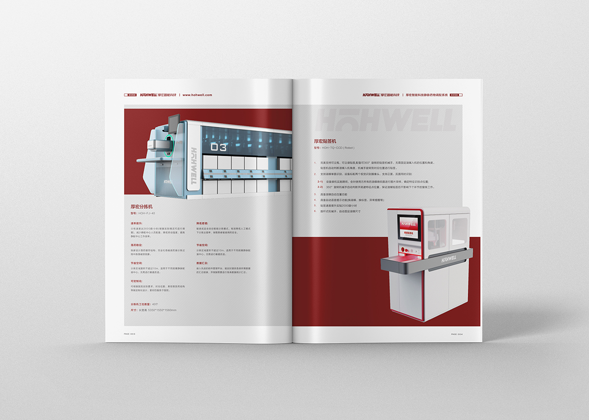 品牌介紹:厚宏智能科技作為一家智慧一體化設備及解決方案供應商, 主要專注與醫療服務體系相關自動化設備領域,涵蓋智慧藥房服務管理工作站、智慧檢驗前端服務管理工作站、智慧靜配中心服務管理工作站、智慧住院區服務管理工作站、智慧手術室服務管理工作站,配備各系統數據信息分析服務功能,為醫療機構人員提供管理和決策信息,構建智慧一體化的醫療機構服務體系,12年宣傳冊設計沉淀,極地視覺值得信賴。可提供服務:醫療企業宣傳、醫院畫冊設計、醫療畫冊制作、醫療產品手冊設計。