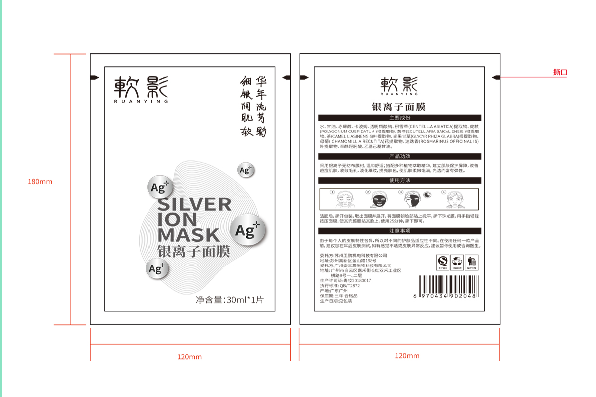【品牌介紹】銀離子面膜|抗痘消炎凈膚,銀離子面膜,通過特殊的處理,將納米銀覆著在無紡布上,不間斷的釋放出銀離子,提升膚色,使肌膚飽滿,光潔而有彈性,整個(gè)包裝設(shè)計(jì)考慮到銀離子的特性,色彩以銀色為準(zhǔn),加上凹凸和燙銀的工藝,彰顯品質(zhì)感。