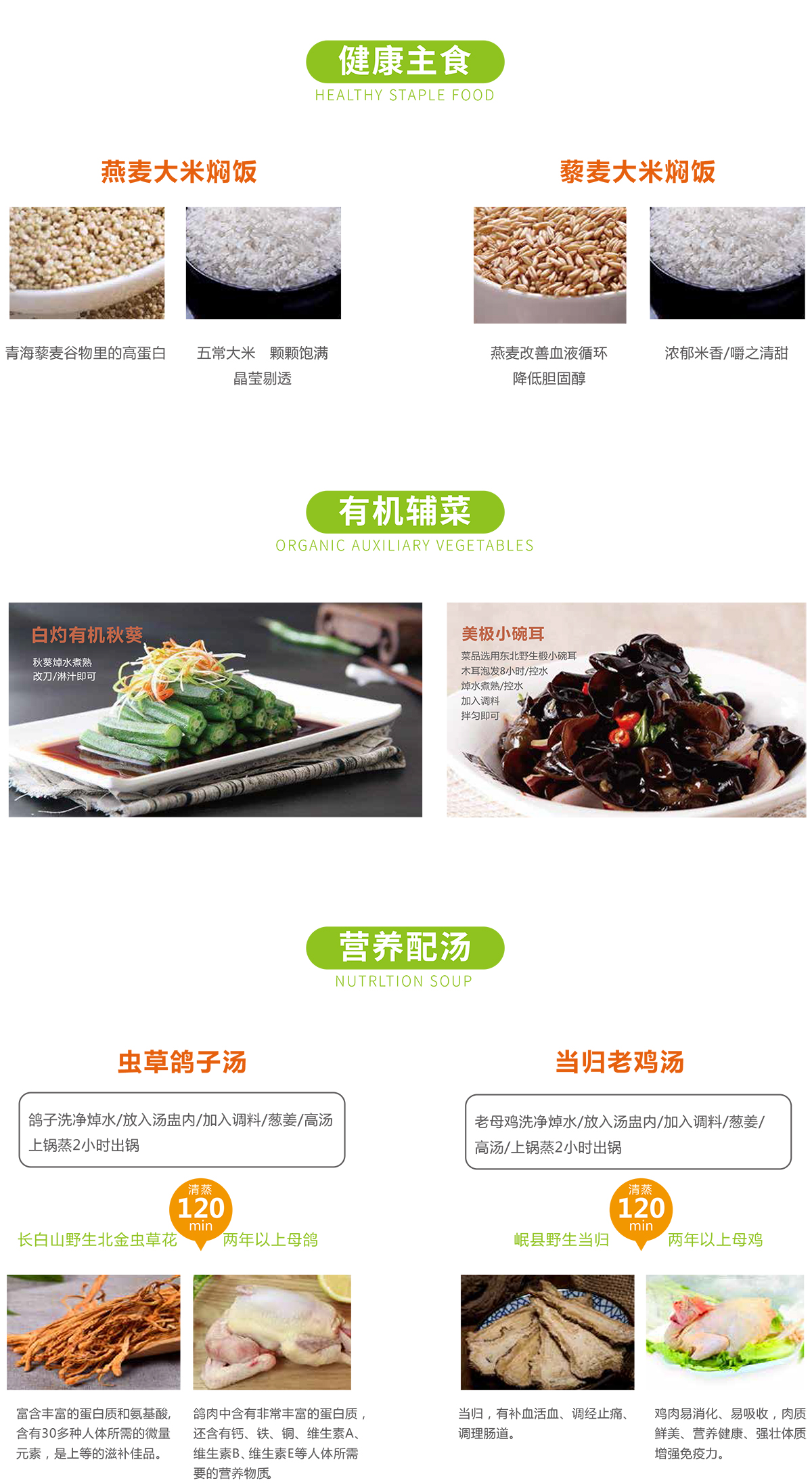 在食材臻選上堅(jiān)持四大原則“優(yōu)”、“鮮”、“活”、“美”,主食五常大米配比青海藜麥、燕麥;主菜自制八珍柱侯醬烹制精選牛爽腩、豆豉烹制精選仔排 、鮮活多寶魚、青蝦; 配湯長(zhǎng)白山野生北金蟲花草精燉兩年以上生母鴿,岷縣野生當(dāng)歸精燉兩年以上生土雞; 輔菜東北野生椴木小碗耳、 有機(jī)秋葵。菜品烹飪精選伯爵特級(jí)初榨橄欖油,每道菜3克油,保證營(yíng)養(yǎng)也兼顧康。專注餐飲品牌全案設(shè)計(jì),50+餐飲品牌全案設(shè)計(jì),我們是一家聚焦餐飲領(lǐng)域的品牌設(shè)計(jì)公司。