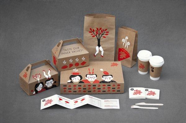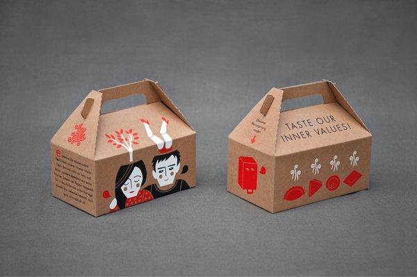德國(guó)設(shè)計(jì)師Alexandra為快餐店The Inside設(shè)計(jì)的包裝。the inside主營(yíng)各樣的餃子——煮的,炸的。the inside很明顯要讓人們關(guān)注包裝背后那些美味的食物,包裝很搞怪,設(shè)計(jì)了一些小人,他們的大腦里都是食物!
