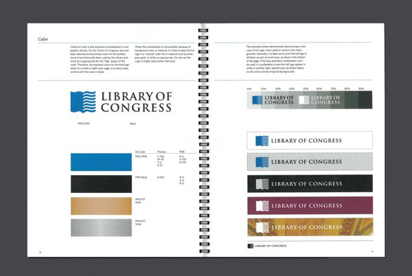 這是Chermayeff & Geismar & Haviv 為美國國會圖書館(Library of Congress)設(shè)計(jì)的品牌視覺形象。標(biāo)志由一本書和美國國旗組合而成。