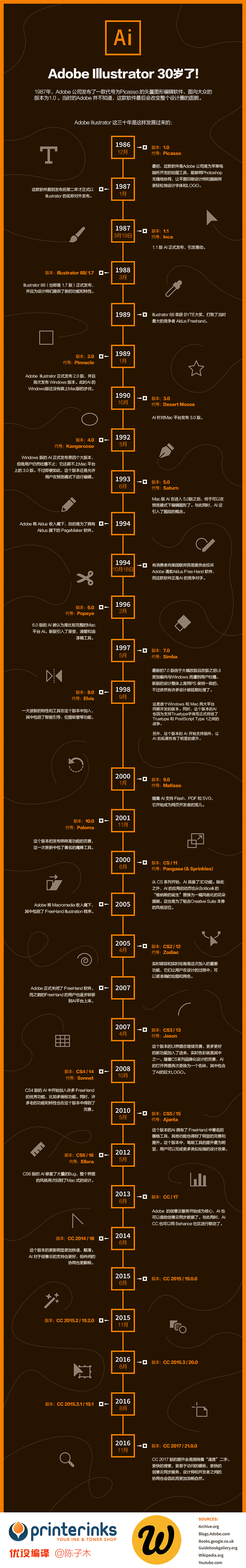 AI 滿 30歲了!這個(gè)強(qiáng)大的工具在過(guò)去的30年間,到底有著怎樣的經(jīng)歷,來(lái)自 Webdesignerdepot 的這張信息圖,應(yīng)該能讓你一窺全貌: