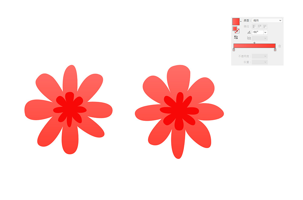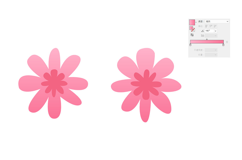 接下讓我們安排橙紅色的花朵,將粉色的兩朵花朵進(jìn)行復(fù)制并更改其配色,就能獲得新的花朵素材。