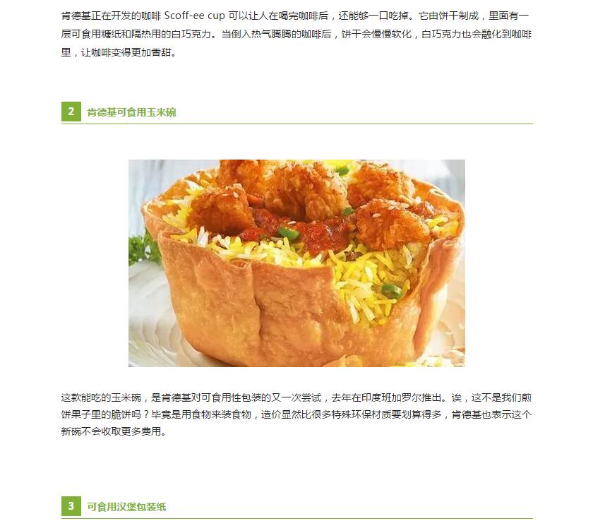 引言:這幾年因為環境污染太嚴重,生產制造商們都紛紛重視起了環保問題,可食用包裝已經成為全球食品包裝行業的大事,也是未來的一大趨勢。