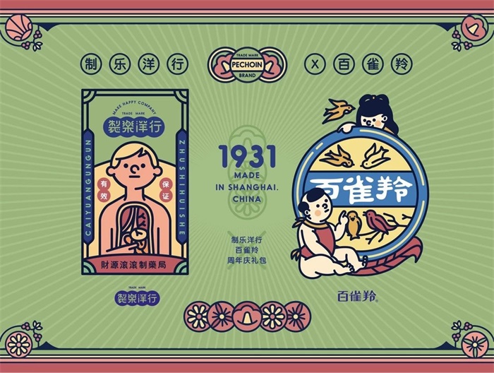 百雀羚周年慶限定禮包:百雀羚818周年慶,制樂(lè)洋行與百雀羚的第二波合作,風(fēng)格依然是復(fù)古民國(guó)風(fēng),分為百雀羚與三生花兩個(gè)系列,設(shè)計(jì)融入了中國(guó)傳統(tǒng)紋樣,民國(guó)月份牌以及百雀羚草本與三生花的元素,并結(jié)合了百雀羚的功能屬性。