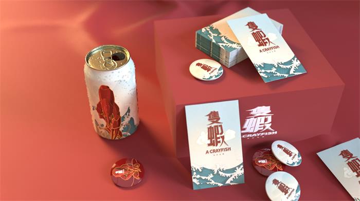 LOGO的設(shè)計模仿小龍蝦的形態(tài),選用硬朗卻又不是趣味的中國紅字體,帶著一種潮流復(fù)古感,棱角分明的細(xì)節(jié)處理如同小龍蝦的爪子堅(jiān)硬突出。品牌的輔助元素運(yùn)用了祥云紋,具有獨(dú)特代表性的中國文化符號寓意祥瑞之云氣,表達(dá)了吉祥、喜慶、幸福的愿望以及對生命的美好向往。祥云紋造型獨(dú)特,婉轉(zhuǎn)優(yōu)美,其美好吉祥的寓意宣傳了中國傳統(tǒng)文化,使得品牌更具生命力。采用了紅、藍(lán)、黃的標(biāo)準(zhǔn)色與輔助色,低飽和度的顏色具有傳統(tǒng)色感,仿佛取色于天空、河流、云彩。鮮艷明麗的色彩構(gòu)圖,紅與白相撞迸出火花形成鮮明的視覺效果。