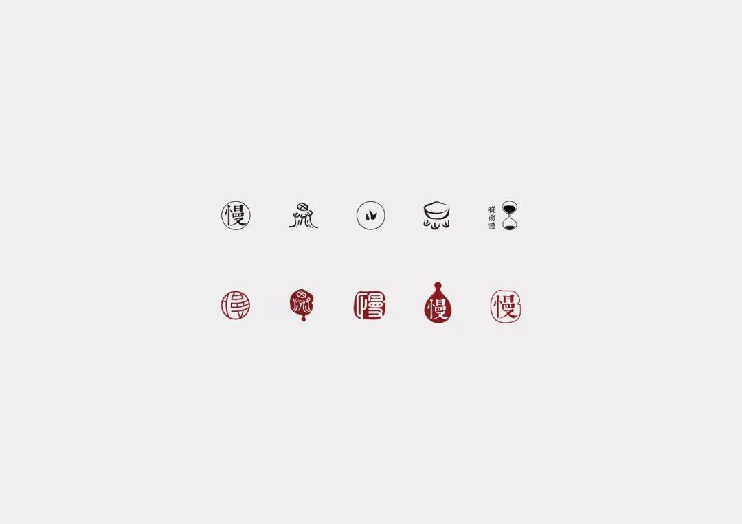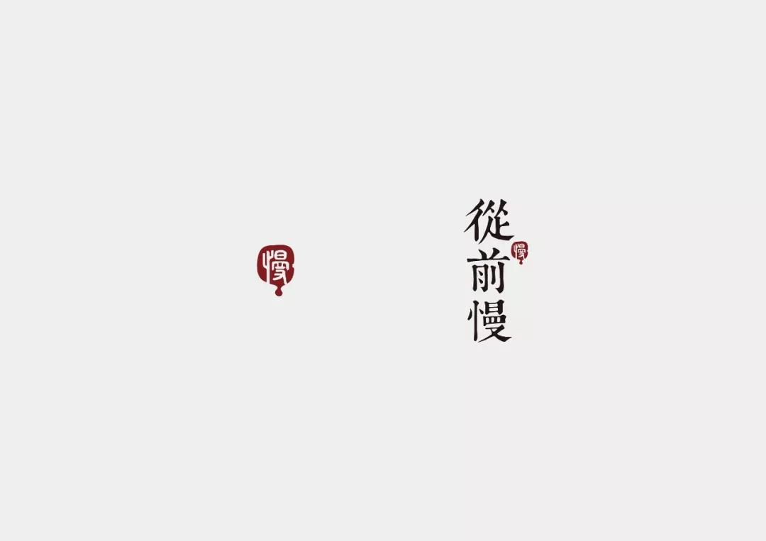“從前慢”是一家滋補甜品店,主打傳統銀耳羹,LOGO選用極具文藝氣息的康熙字典體,旁邊一個小小的纂體“慢”字印章,輔助圖形也在“慢”字上進行延展。整套VI設計以黑白為主色調,無多余綴飾,風格簡潔婉約,為了配合文藝國風的調性,除菜單外的文字全部采用豎版排版。