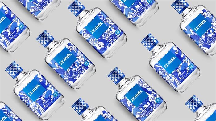 這個包裝設計從情感出發,結合品牌的藍白色彩調性,創作了三個系列的現代扁平插畫,這些插畫里有聚會的歡樂放松場景,也有抽象化的人物微醺作樂的歡愉場景,看起來好不熱鬧!
