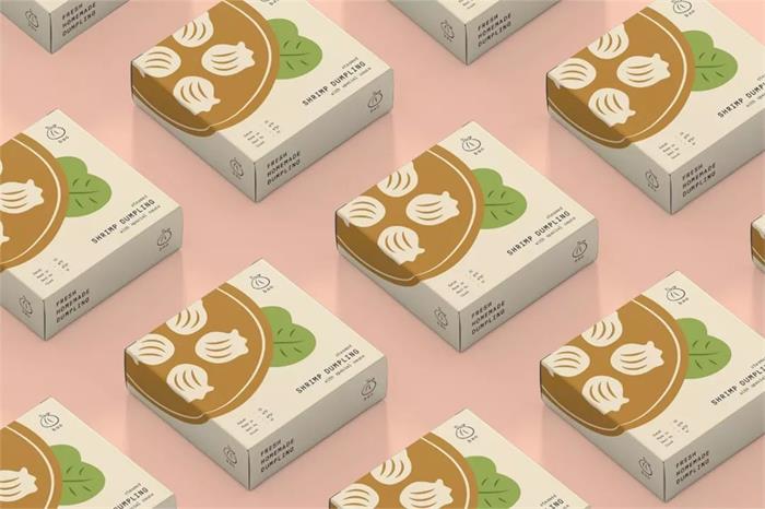 這是一個中式點心品牌,設計師結合“包子”與“包袱”的形象,設計得出的品牌標志,既是包子,也是點心禮盒的意思。