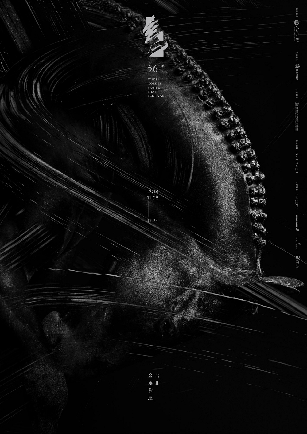 除了濃郁的色調,黑馬周遭的每一寸刻痕,都是桀敖不馴的痕跡,象征電影人對創作的熱情與執著。然而脫穎而出的黑馬勢必歷經無數掙扎磨練,因此從馬鬃等細節還可發現,這匹“黑馬”早已淬鏈成勇猛的“戰馬”,正奔向華語電影的最高殿堂,追求屬于他們的榮耀。