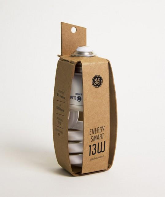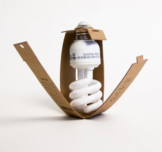 這是學生Michelle Wang為GE節能燈設計的一款包裝,它使用回收的刨花板(足夠硬~~)為包裝材料,不使用膠水并盡可能少的使用油墨。Michelle Wang 的基本想法就是設計一款真正的環保包裝。