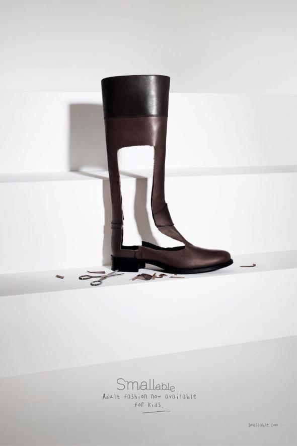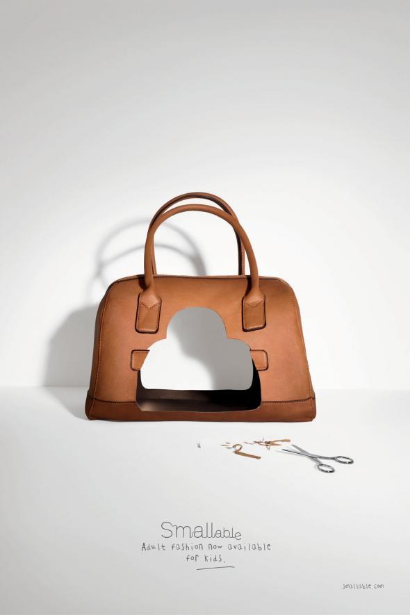 法國在線品牌Smallable,專門為孩子們提供超時尚的在線時裝及設計概念。這種直接在大人衣服上挖洞的形式,相當直觀的表現了Idea:一樣時髦,只是Size不同。另外,裁剪的碎屑隨意的散落一旁,更體現了定制、量體裁衣的核心,不可謂不精妙~ 廣告