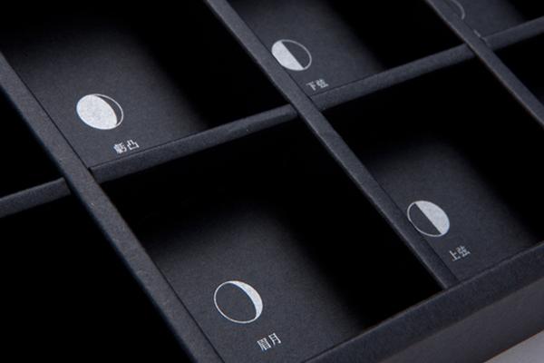 “Citrus Moon”月餅包裝涵蓋了人文的東方傳統和當代美學生動的色彩,在包裝外盒上抽象的水彩顏料中秋滿月的象征符號,圓圓的水果,借以尺寸設計,使滑動中的外套盒呈現出不同階段的月相,內部盒則是一個衍生的月運周期,每個月餅對應著月相,配以詩話,這個包裝傳達了傳統禮儀與現代美學的精心整合。