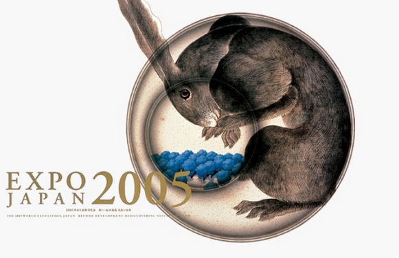 針對原研哉這張海報,我們分別分析下這三層,這張海報的背景層使用了淺灰色,圖形層創作了兔子,森林與形狀的組合圖形,信息層創作了一個接近金色的文字組合。這三層以下、中、上的順序排列起來,相信您對于這張海報在的結構在腦海中已經有了構想。