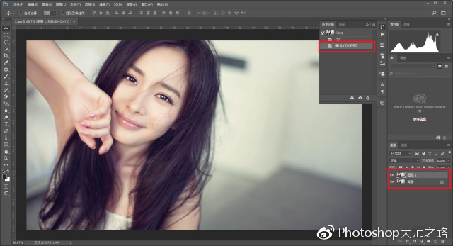 每一次在作圖之前,都要進行ctrl+j復制一次背景圖層。這樣的目的其實就相當于給原圖層進行備份,以便不時之需: