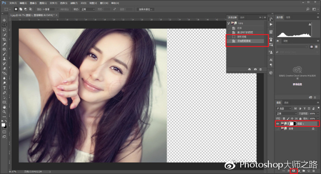 但是要知道,這個操作是不可逆的。特別是在你幫別人處理圖片的時候,如果對方認為需要多保留一些區域等,那重新操作起來就很麻煩。正確的做法應該是建立好正確的選區后,添加圖層蒙板: