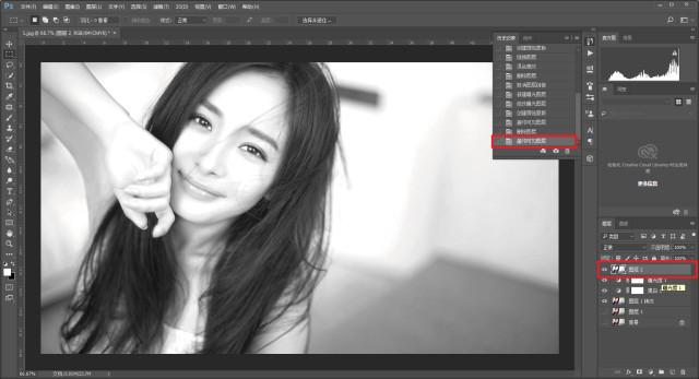 當我們需要在之前的所有的圖層效果上在添加其他的效果,盡量使用ctrl+shift+alt+e蓋印圖層,而不是把前面的圖層進行合并。因為合并以后,前面的效果就又都無法單獨調整了: