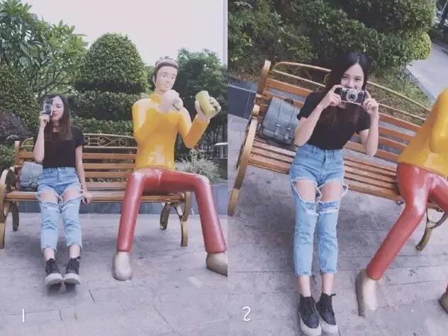 每個妹子都希望有一雙大長腿,和高挑的身材,即使沒這條件,在拍照的時候也可以創(chuàng)造條件不是?