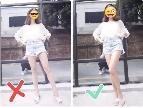 拍照角度很重要,但拍照姿勢也同樣重要。下面教大家?guī)追N簡單易學(xué)的拍大長腿姿勢: