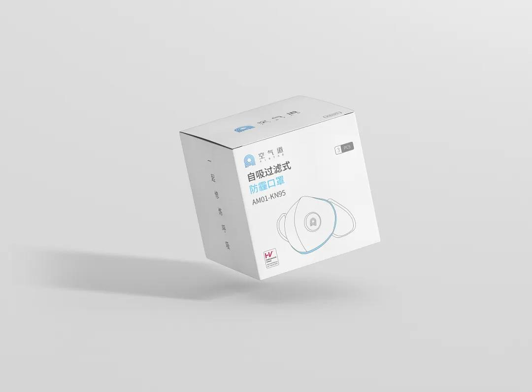 極簡白的立體包裝,整體設計更加小而精致,正面插畫的口罩外觀形象直接簡單,加入藍色描邊使口罩更有辨識度。