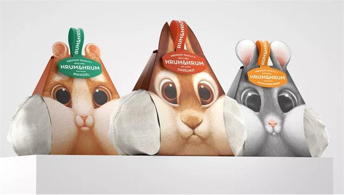 頑皮可愛的小松鼠最擅長收集堅果及種子,藏在腮內(nèi)。堅果的好處可多了,營養(yǎng)豐富又美味,而且天然健康。小松鼠無論在自然中還是動畫片中都隨處可見,通過松鼠對堅果的喜愛,以及它們在嘴巴里暫存食物的特點,設(shè)計師將這一創(chuàng)意運用到了堅果包裝上,布袋裝滿堅果就像一只嘴巴塞滿堅果的小松鼠。可愛生動有趣,具有敘事性,還突出了產(chǎn)品本身是天然無添加的零食的特點。既具實用性又能給消費者帶來情感的愉悅。這款來自白俄羅斯Hrum-Hrum堅果包裝設(shè)計在微博上爆火,網(wǎng)友直呼“太可愛了”,“不愛吃堅果的我都想一樣來一包!”