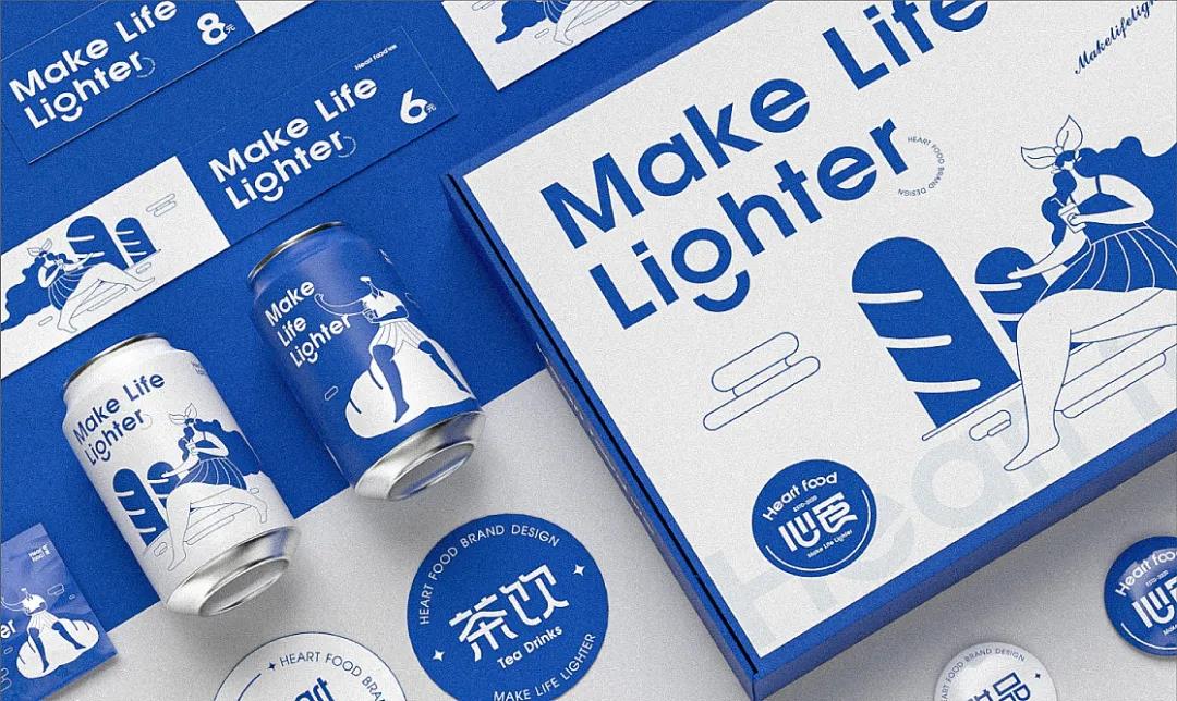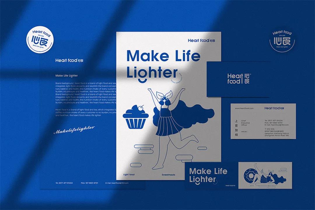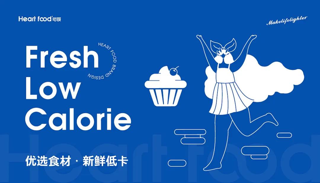 心食是一個(gè)集輕食、甜品、茶飲于一身的創(chuàng)新輕食品牌,針對(duì)新時(shí)代青年,主要是女性,對(duì)健康生活品質(zhì)的追求,以自然均衡、健康為品牌理念,將零負(fù)擔(dān)、零壓力、更健康帶給每一位顧客。品牌在視覺(jué)打造上,以藍(lán)色為主色調(diào),藍(lán)色象征著永恒,同時(shí)又能帶給人們清新、干凈通透的感覺(jué),與輕食這一品類有著較高的契合度。品牌從英文“HeartFood”中延伸打造了一個(gè)無(wú)窮的超級(jí)符號(hào),這個(gè)超級(jí)符號(hào)代表著零負(fù)擔(dān)和零壓力,無(wú)窮也就是永恒,與品牌的使用色有一致的寓意。