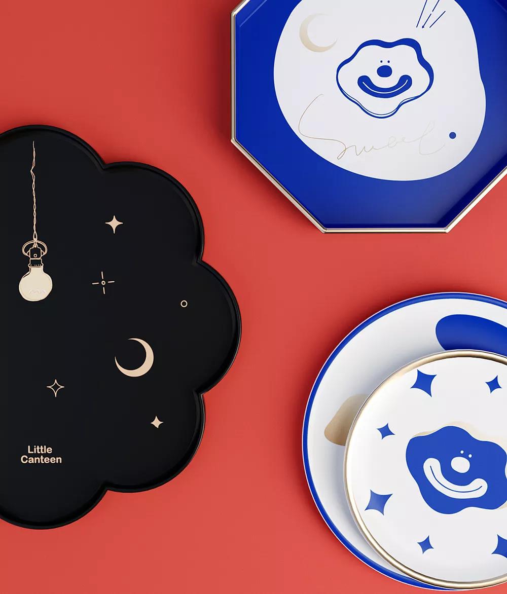 店內(nèi)造型奇特的盤子也繪制了插畫,搞怪的插畫形象讓人忍俊不禁,這樣的設(shè)計(jì)能給到店用餐的客人留下深刻印象。