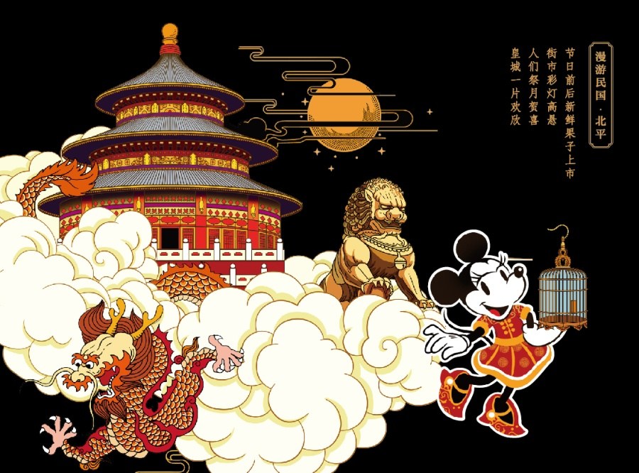 在“Mickey漫游民國”的主題下,RLON用畫筆,將北京的皇城味、上海灘紙醉金迷的都市味兒、廣府美食獨(dú)有的思鄉(xiāng)味兒和昆明云貴高原物產(chǎn)的風(fēng)味,一樣樣畫下來,美輪美奐且“最有范”的迪士尼民國范月餅包裝設(shè)計(jì)完美呈現(xiàn)。