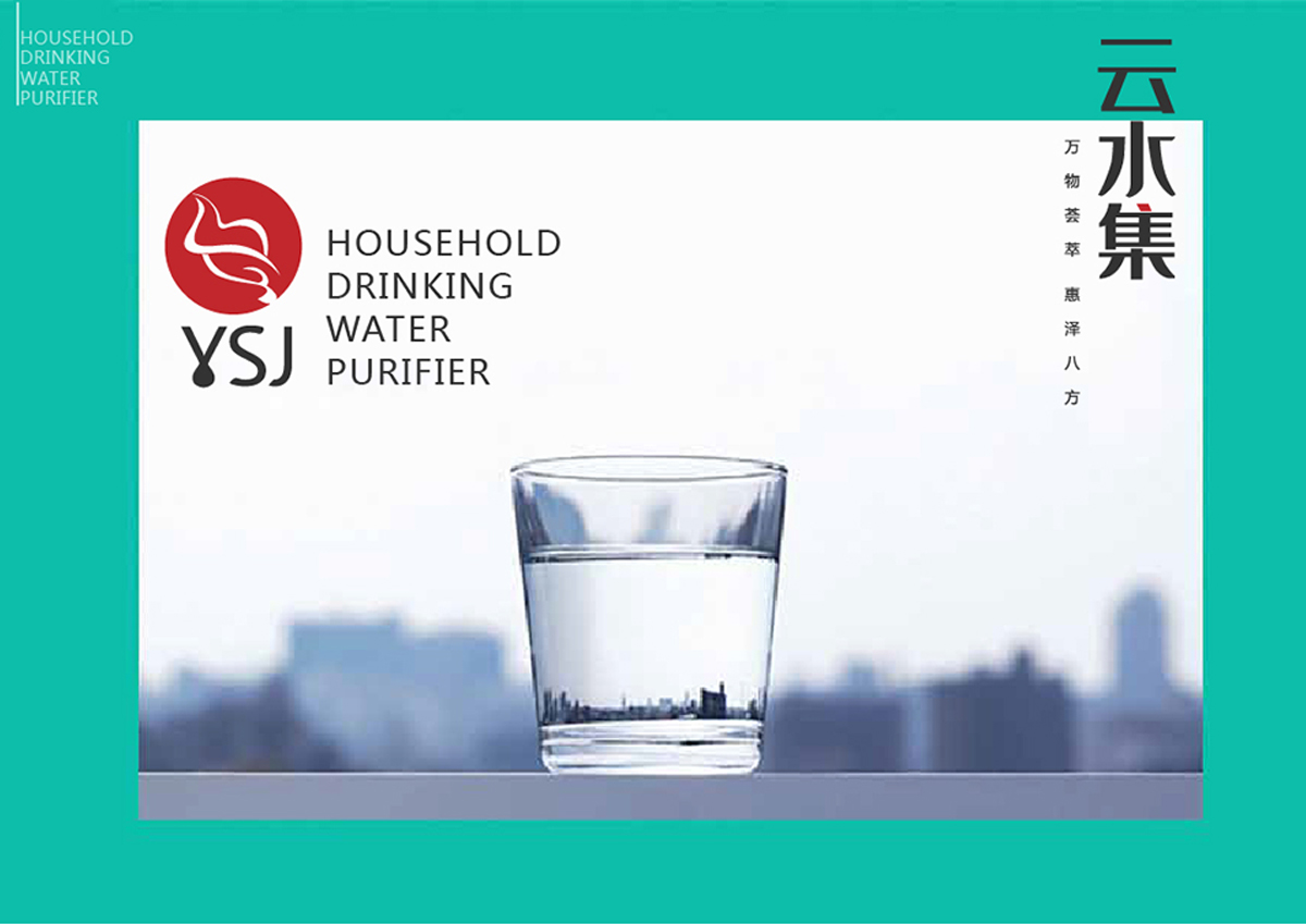 LOGO圖形創意中將“云水集”音節首字母“Y、S、J”構圖成鯤鵬圖案,其動作欲展翅飛天,寓意企業懷抱鯤鵬之志,平臺遠大,“萬物薈萃,惠澤八方”。字母“Y”與水滴相結合,代表企業初創凈水產品,在品牌LOGO中保留其造型是為了警示企業所有員工不忘初心!
