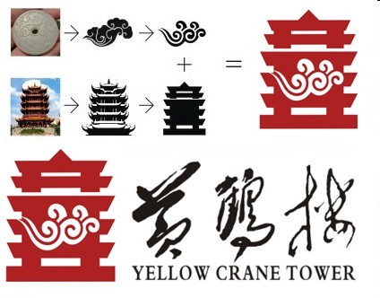 2、新標志以黃鶴樓建筑為主體造型元素,整體上以樸實的橫豎筆畫,表現出黃鶴樓建筑造型基本特征。