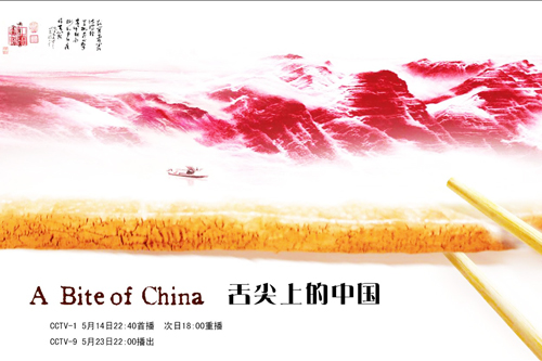 《舌尖上的中國》海報(bào)的確十分有創(chuàng)意,遠(yuǎn)看是一雙筷子夾著一“臘肉”,近看發(fā)現(xiàn)“臘肉”其實(shí)是一幅山水畫。
