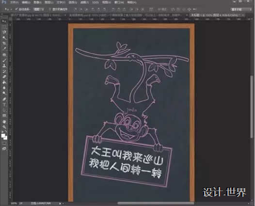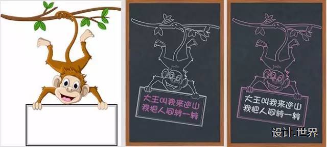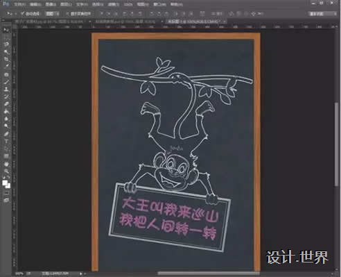 8.然后使用移動工具把猴子拖到一個黑板背景上就ok啦!可以加上一些粉筆字(不會的小伙伴們可以在網上找下教程哦)