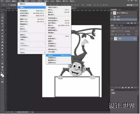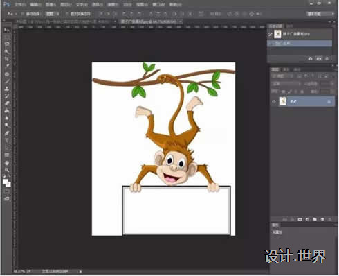 1、選一張小伙伴們喜歡的圖片簡單粗暴的拖進PS里設計,因為今年是猴年嘛,所以我就選擇了一張萌萌噠猴子的圖片啦啦啦~