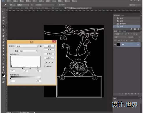 5.點擊:圖像—調整—色階,或者使用快捷鍵ctrl+l。這個操作的目的是讓主體看起來更清晰和減少一些不必要的細小的線條。這個根據個人喜歡的圖片效果來調整啦。