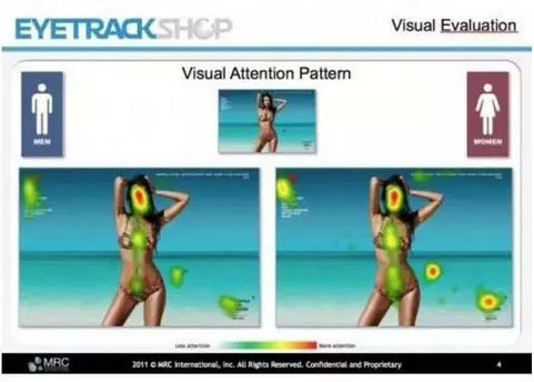 男人花更多時(shí)間看“美女”,而女人會花更多時(shí)間閱讀美女之外的廣告。