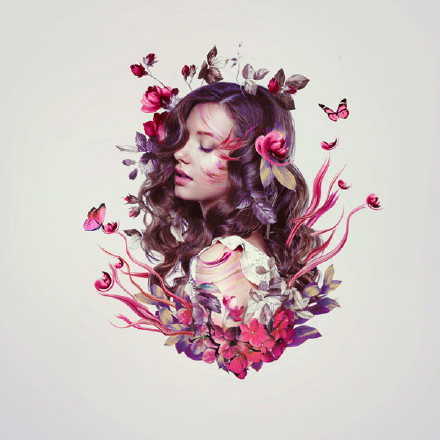 【平面設計——漂亮的花紋人像海報】