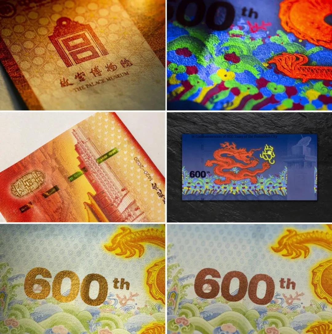 紫禁城建成600年紀念券。值得一說的是,紀念卷采用了十余種印刷技術(shù),例如江崖海水紋采用膠印專色印刷,在不同的環(huán)境中呈現(xiàn)出不同的炫彩效果。