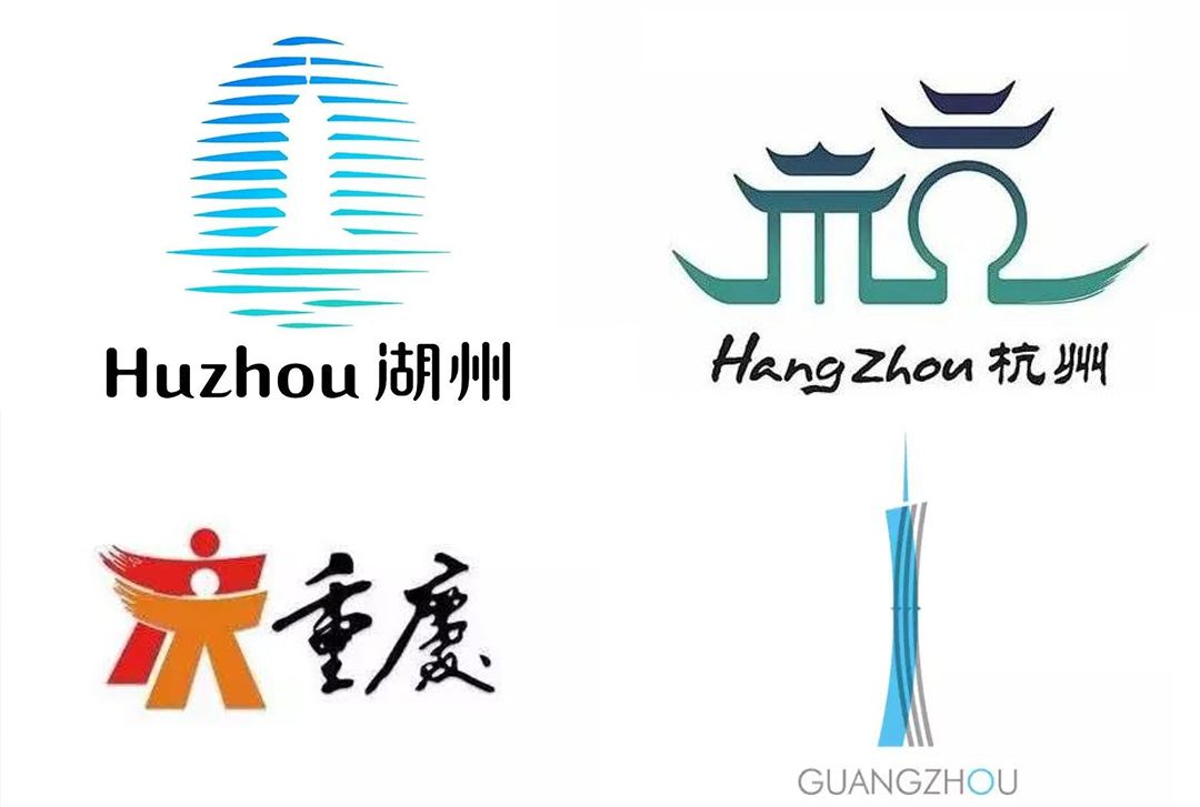 我第一個感覺就是視覺上想要傳遞的信息太!多!了!插畫設(shè)計結(jié)合各種元素呈現(xiàn)畫面這個操作還算是合理的,但是——LOGO設(shè)計給人的感覺就是拼湊元素式地匯聚城市特色。這繪制的節(jié)奏就像是先來個具城市特色的梯田和山脈,再把建筑特色添上,最后加上些鳥來豐富一下,完事!整個設(shè)計傳達的信息太多,給人一種“眼花繚亂”的感覺,這樣反而讓人毫無印象,記不住。所以,在LOGO的設(shè)計上以簡化的形式去呈現(xiàn)城市特色反而更直觀明了。像湖州城市LOGO,以剪影的形式結(jié)合了現(xiàn)代化地標“月亮酒店”,傳統(tǒng)標志性建筑“飛英塔”及太湖三大元素。LOGO通過采用統(tǒng)一的線條描繪風(fēng),使這些元素形成一個整體視覺上傳遞了城市文化,又不失簡潔大氣。杭州城市LOGO,以漢字“杭”的篆書進行演變,融合航船、城郭、建筑、拱橋等元素,以“字+圖形”結(jié)合的形式,達到了簡化。重慶城市LOGO,采用了“人”為主要視覺元素,雙人組成了一個“慶”字,并且“人人重慶”如今也成為了城市形象標志。還有廣州城市LOGO,直接運用具地標性建筑廣州塔融合“州”字設(shè)計。可以看到以上這幾個城市LOGO雖然看起來很簡潔,但是傳達的城市文化含義厚重。