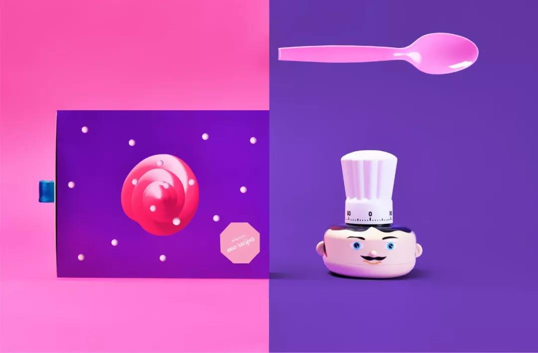 這是一個傳達快樂的糕點烘焙品牌,通過采用鮮艷明亮的色調(diào)搭配可愛有趣的圖形,創(chuàng)造出一些象征糕點的三維圖形,包括一些包裝、勺子道具等,給人一種愉悅舒適的新鮮感。