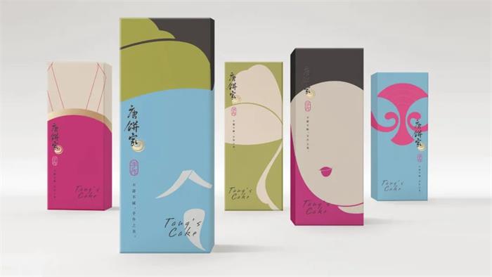 于2002年創立的唐餅家中式糕點品牌,這次的包裝形象升級以簡潔的設計手法和國潮風格,結合唐朝代表性的宮廷或官家元素,演繹了全新的唐朝韻味。首先包裝以唐朝畫作重現精致唐風,帝后組合作為品牌核心形象,結合唐朝文化藝術中的三彩馬、三彩駱駝及唐朝經典建筑設計。另外通過扁平化色彩,抽象線條的畫面勾勒,巧妙展示了產品特有的外觀形象。整體波普化的呈現形式,契合品牌調性的同時,系列的視覺效果增添了幾分美感。而另一個版本的獨立包裝,莫蘭迪色調背景下以抽象化呈現了食品本身的外觀,激發消費者的味覺聯想。