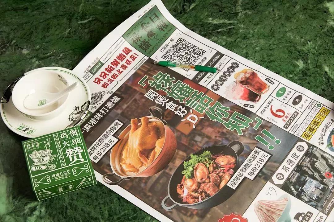 祿嬸雞煲是一家港式火鍋餐廳,因此從VI到空間設計都采用港式風格,復古懷舊中帶有一點輕奢的調性。