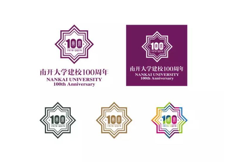 設(shè)計(jì)理念:南開(kāi)大學(xué)百年校慶LOGO的主體由阿拉伯?dāng)?shù)字“100”、百年紀(jì)年及八角星形的三重組合這三部分共同組成。其中數(shù)字“100”的兩個(gè)“0”內(nèi)分別嵌入了南開(kāi)大學(xué)校徽中“南”、“開(kāi)”兩個(gè)字的篆體字樣,并在下方輔以紀(jì)年“1919-2019”,寓意滄桑歷史,世代銘記,百年南開(kāi),繼往開(kāi)來(lái)。